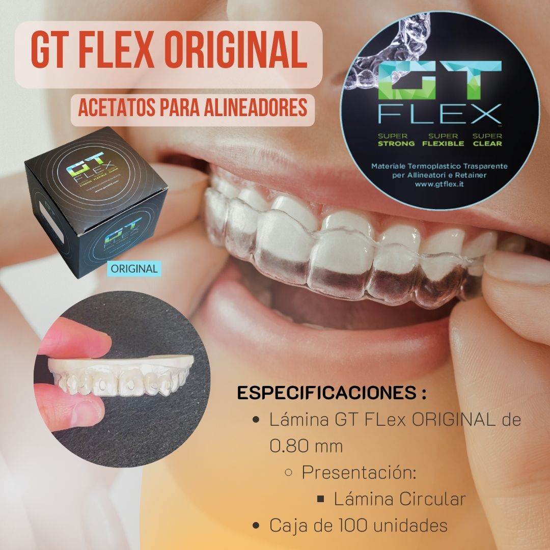 Maximiza la eficiencia en la creación de alineadores dentales con nuestros Acetatos GT Flex Original. Diseñados especialmente para profesionales, ofrecen: