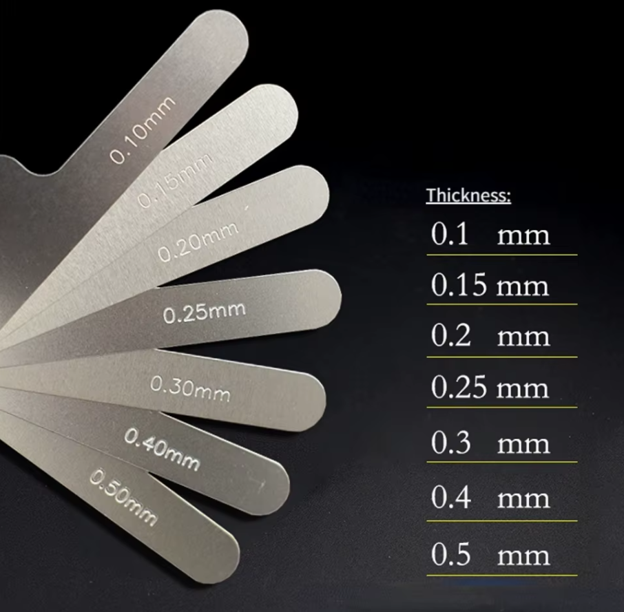 • Calibrador para grosores de 0.1 mm, 0.15mm, 0.2mm, 0.25mm, 0.30mm, 0.35mm , 0.40mm y 0.50mm